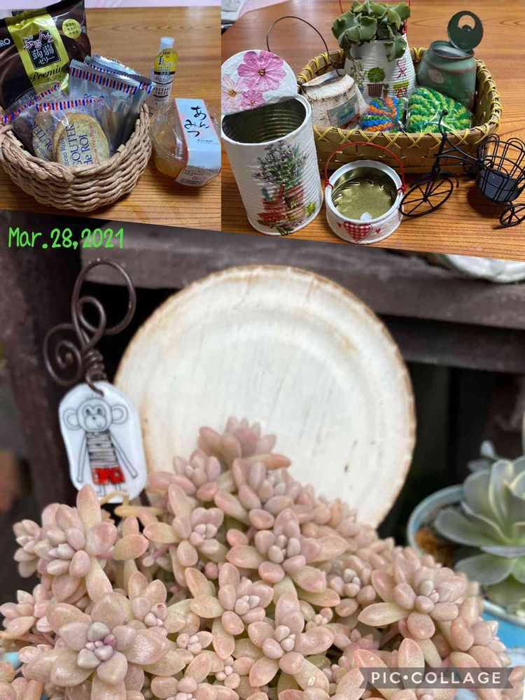 そして昨日 つぶつぶの日のみらいさんから届いたたくさんの素敵なリメ缶 あみあみタワシ お菓子 多肉さんなどなど ダンボール いっぱいに入ってました🤩😍🤩