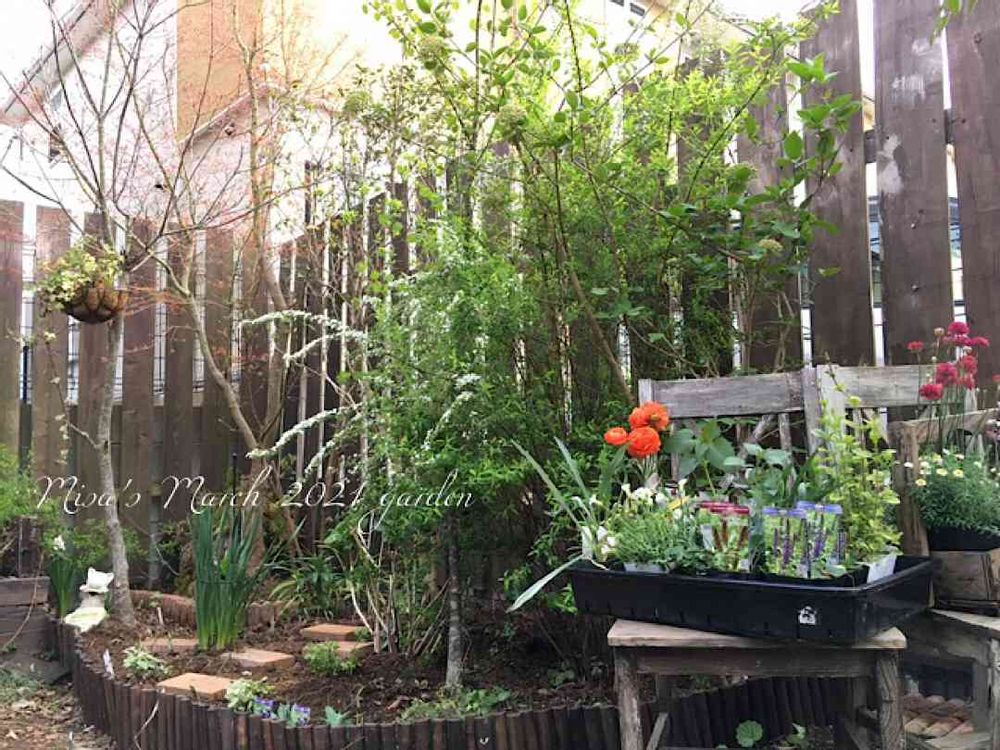 奥のヤマボウシさんと、モミジさんが少しづつ芽吹いて来ました🍁