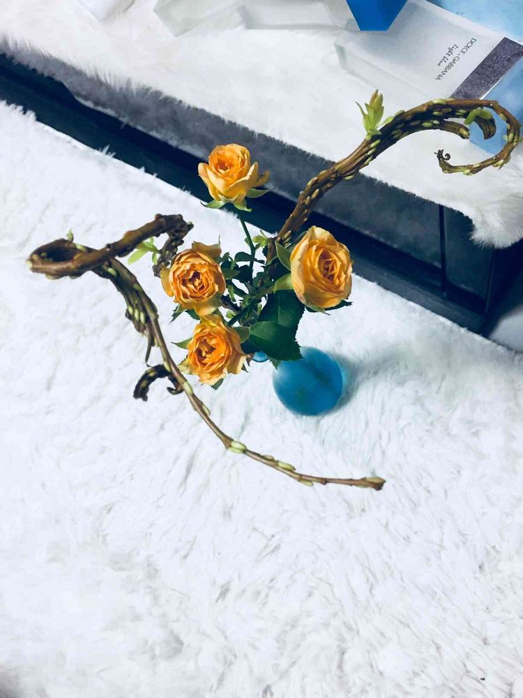 石化柳くるくるさんに 黄色オレンジ系が合うかなって✨ 石化柳のクルンってところが好き🌸