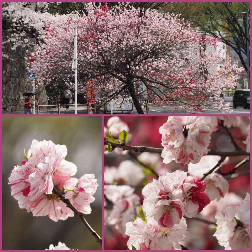 1本の木に桃色・赤色・白赤桃色の絞り柄の複色咲きで、とっても華やかな🌸花桃でした🤗