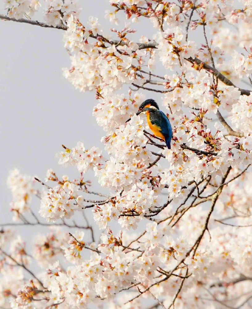 念願かなってようやく撮影出来ました☺️ソメイヨシノをバックにするとカワセミのカラーが映えますよね🎵