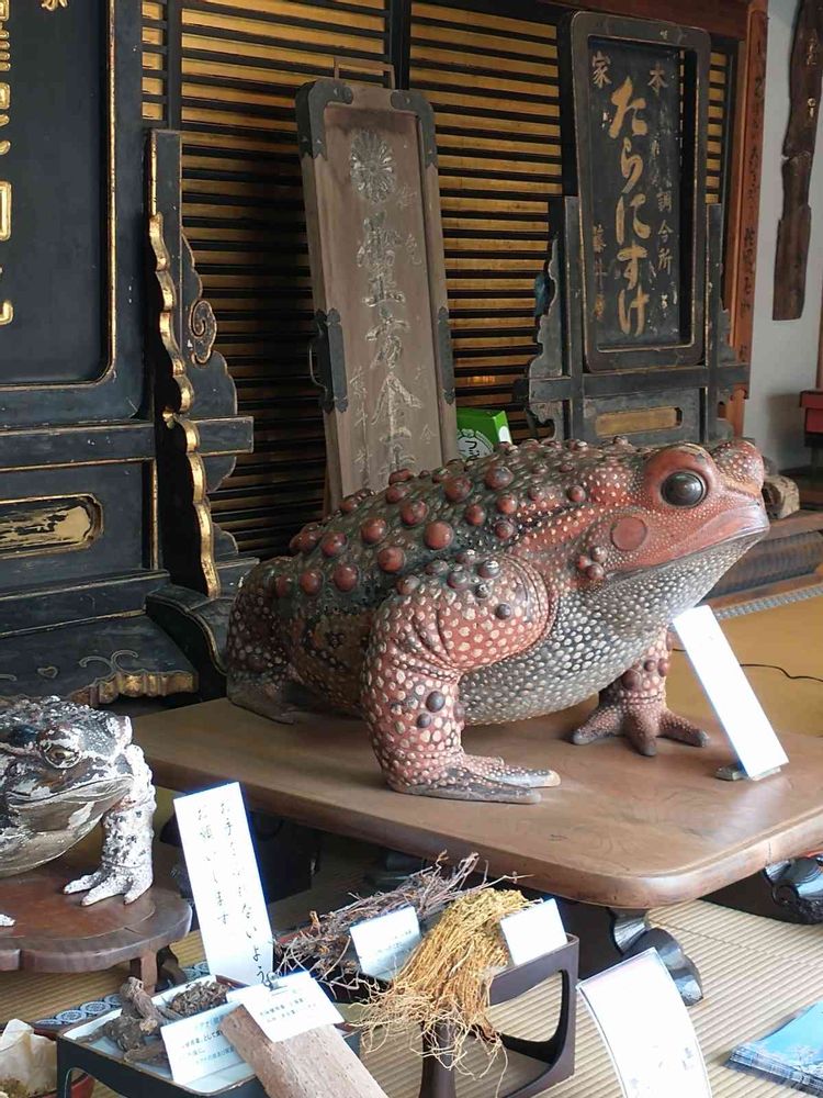 奈良・吉野山 漢方胃腸薬・陀羅尼助丸の店先は🐸がお出迎え