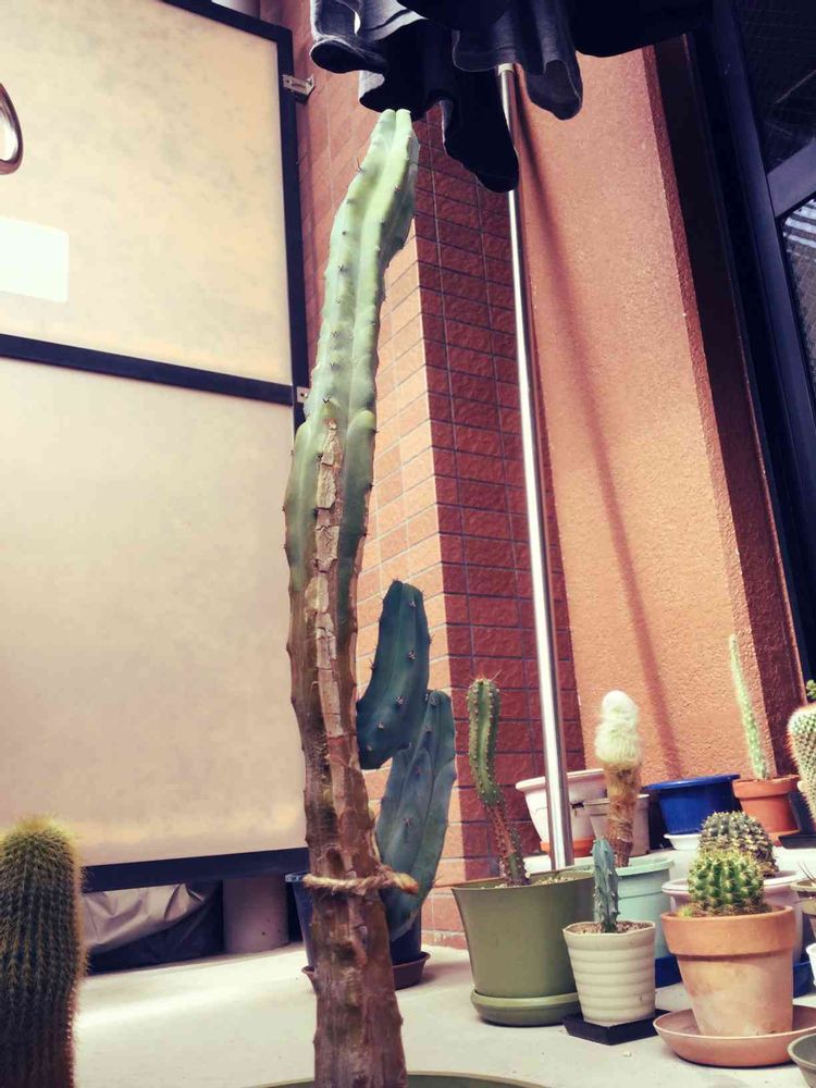 柱サボテンで、うちのサボテンの中では最も背が高いです。購入してから6年目くらいになります。