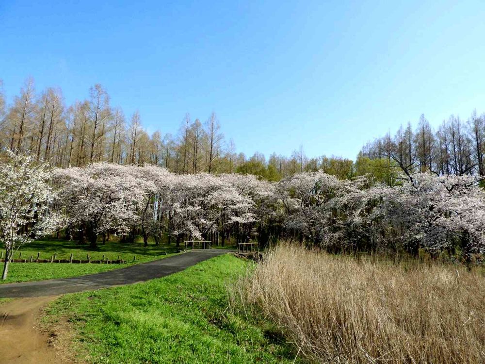 上から、メタセコイア、ソメイヨシノ、葦と草地