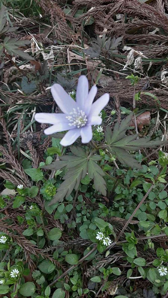 実家の山にて、薄紫色のキクザキイチゲさんに会いました。