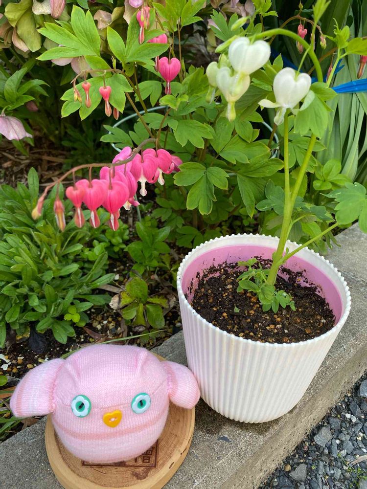 タイツリソウ、白をお迎えピンク色と揃うと可愛いさ倍ですね〜💕