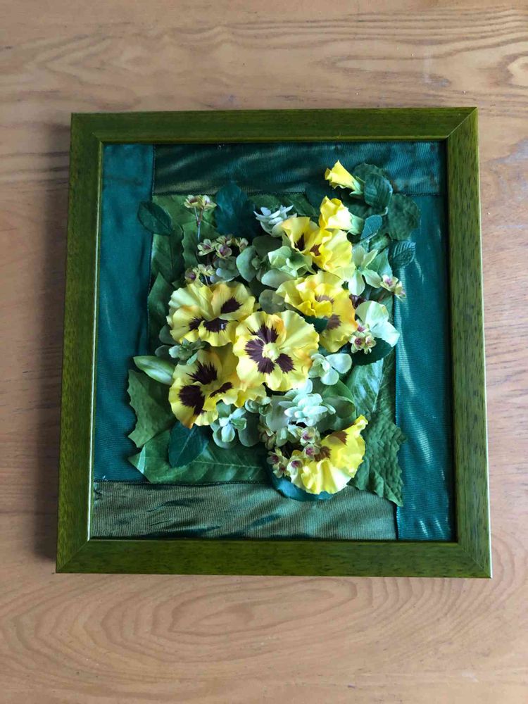 グリーンのリボンと黄色いパンジーで春らしく。