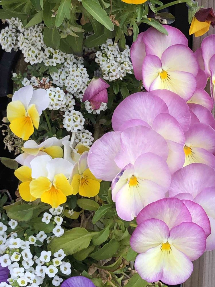 右側のビオラさん(パンジーかな)の色素敵😆😆すごく好きです。