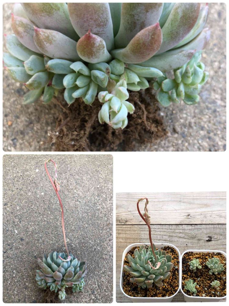 右下↘️ 子株ちゃん取って植えました。でも、子株ちゃん 1個 取りにくくて、そのまま💦 まっいっか。