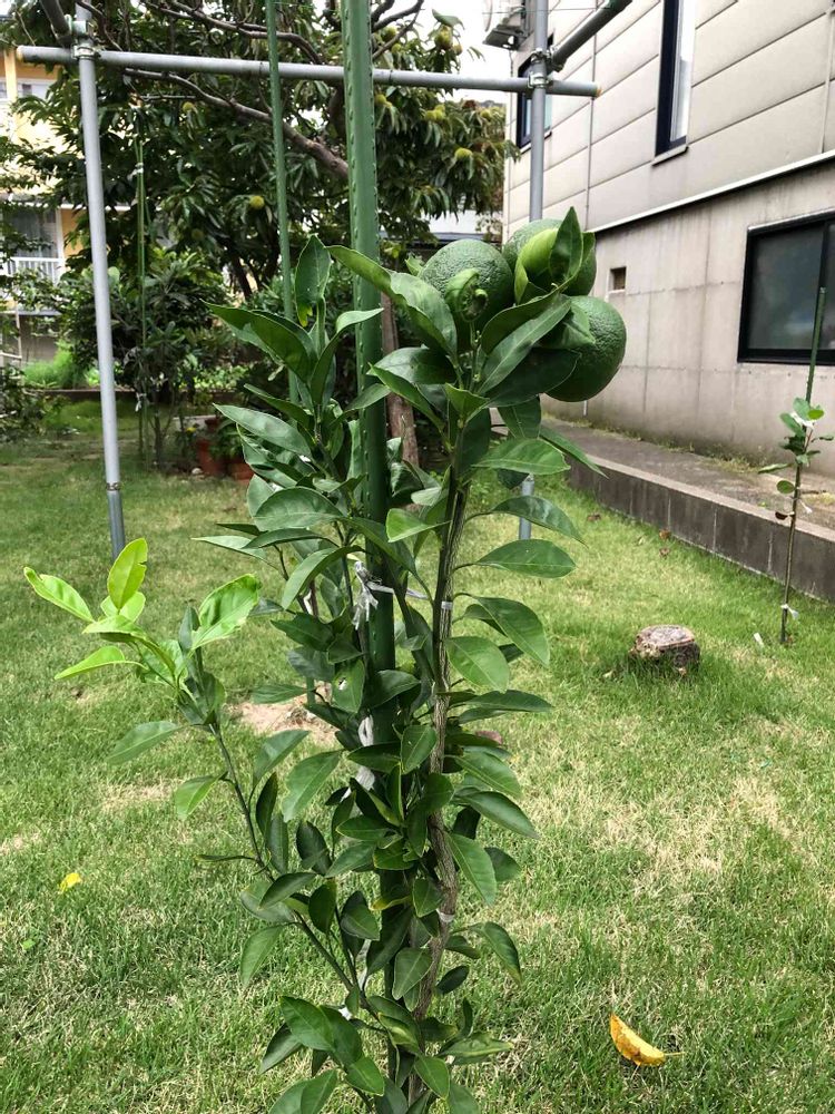 今年、植えた温州みかんの実が育ってます。植えたばかりで、こんなに大きな実を付けて、大丈夫かちょっと心配です。