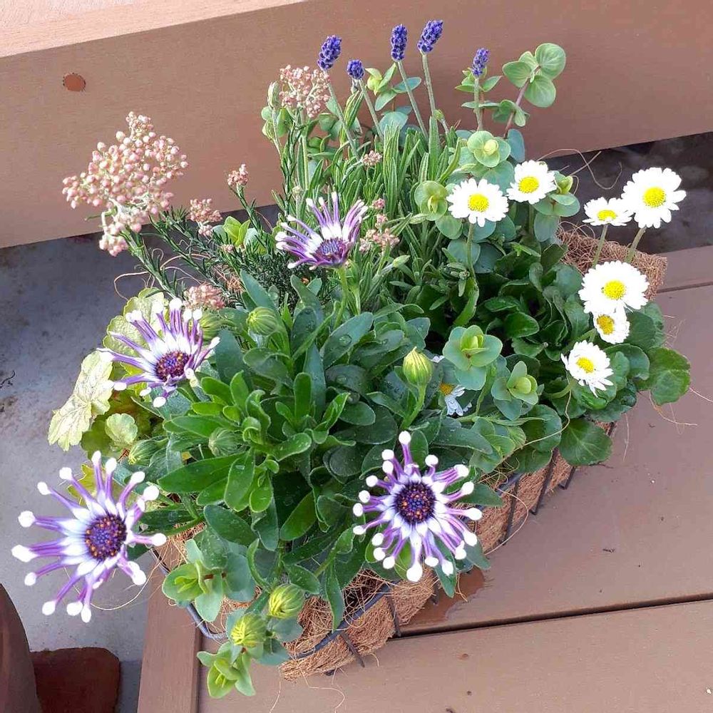 セリアのカゴとダイソーのヤシシートで寄せ植えを作りました🌸🌿🌿