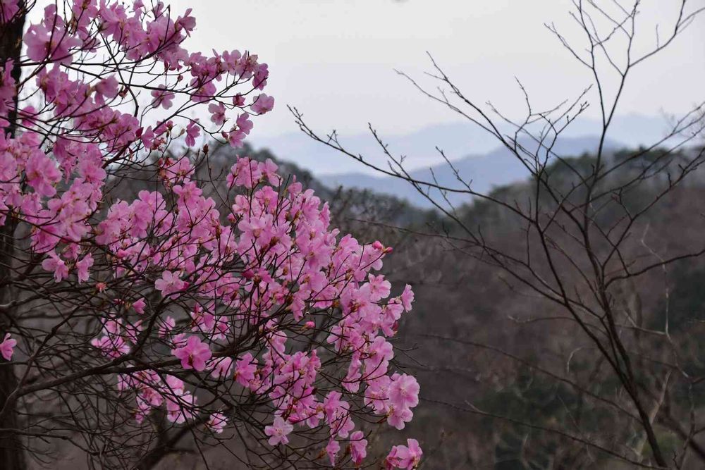 山肌が萌葱色になる少し前、彩りを添えてくれるかわいいピンクのヒラヒラちゃん。
