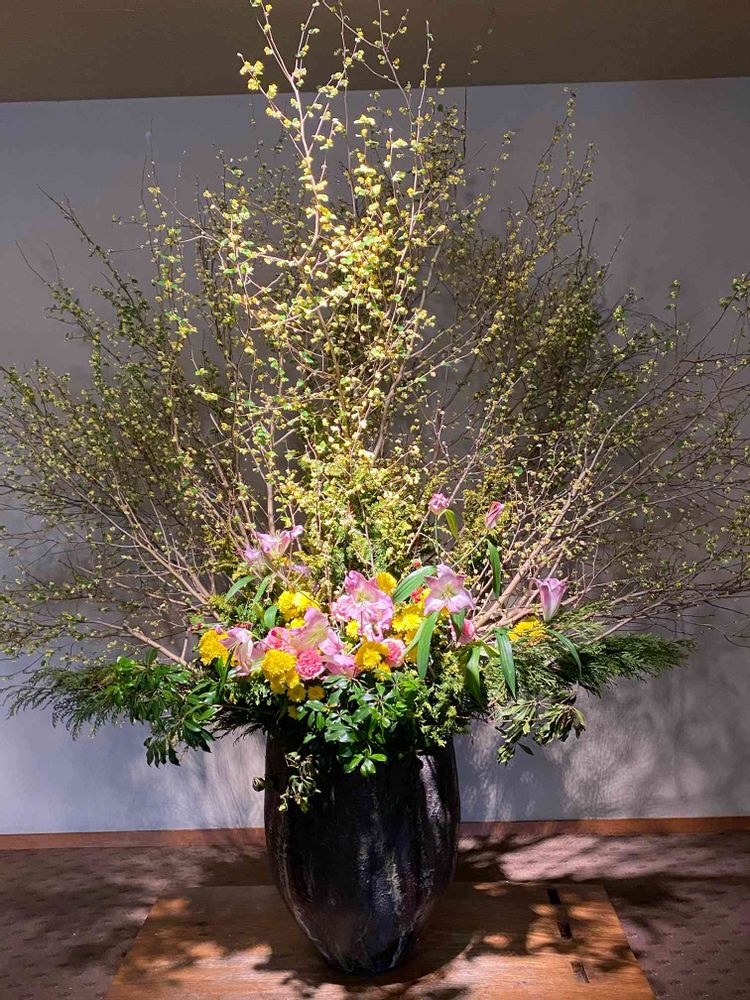 お宿のロビーのお花💐高さが天井近くまでありました💕