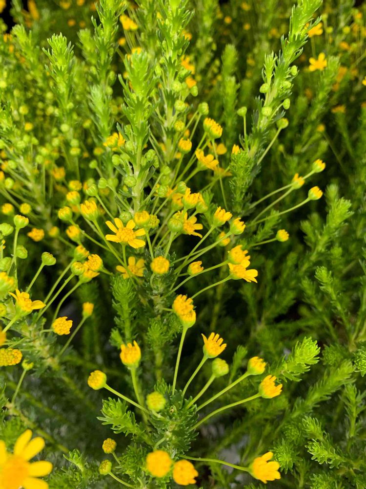 花の時期は1月〜5月、ユリオプスデージーの仲間かな?ゴールデンクラッカーのほうが暑さに弱い⁈ 花は1㎝ないくらい小さくて可愛いです〜💕