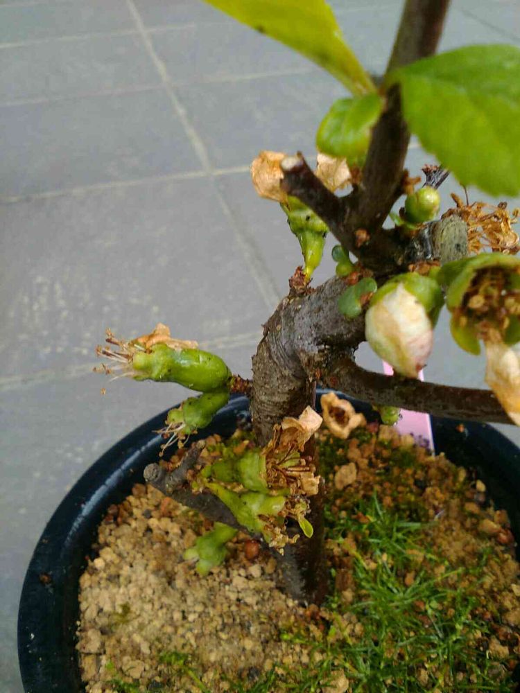 こんなに小さな鉢植えのボケに、こんなにかわいい実がついてます💕