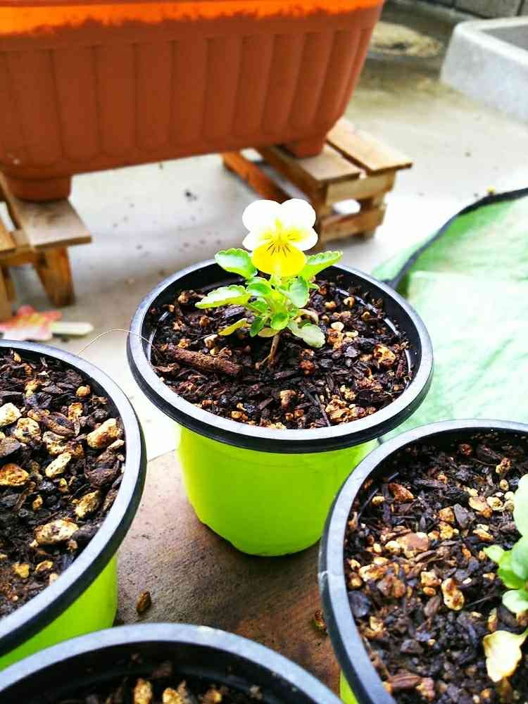 8月に種まきしたビオラさん、小さい花をつけました(*^.^*)