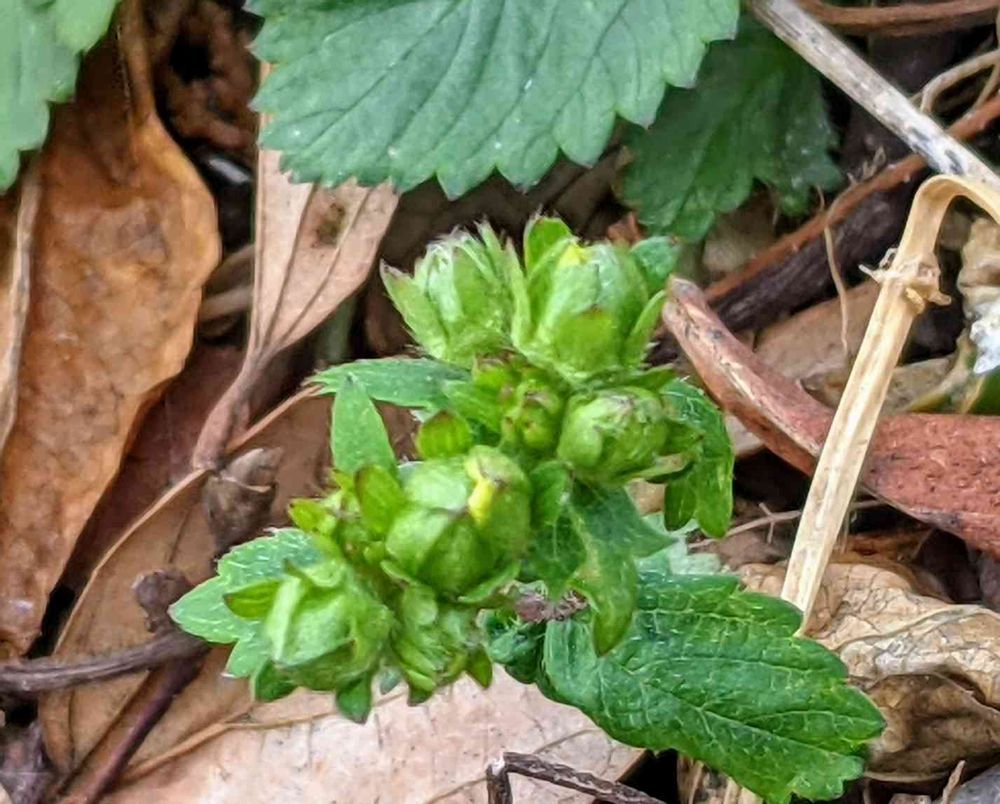 ヘビイチゴの蕾にいよいよ黄色が見えて来ました。お花が楽しみです。