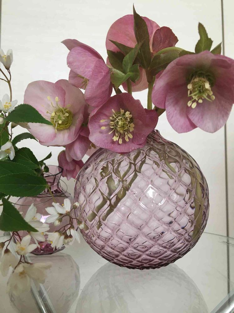 お花🌸とピンク色のグラス花瓶が絶妙です🥰🥰