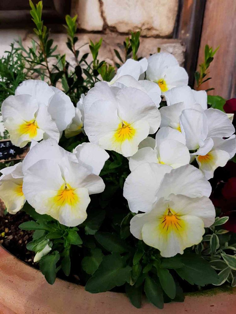 玄関,よく咲くスミレ・ミルクセーキ,寄せ植えの投稿画像