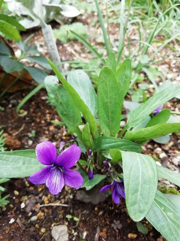 去年購入した濃い紫か素敵な菫、今年は出てきません😅今日知知り合い方と話したら購入した菫は難しいと言われました😓その方は山から採取した菫が毎年増えて出てくると、、