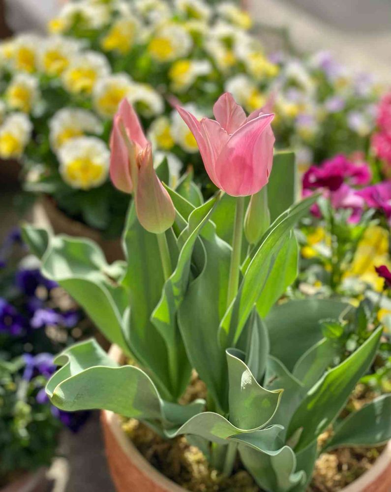 パンジーと寄せ植えにしていたチューリップが咲きました🌷