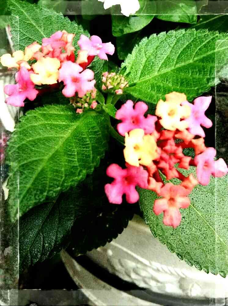 ランタナの花が黄色からオレンジ色、そしてピンク色と変わってきています。