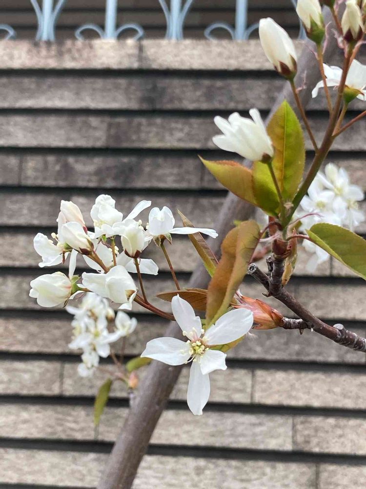 今年も清楚な白い花ジューンベリーが咲き始めました♫3枚連続投稿します。