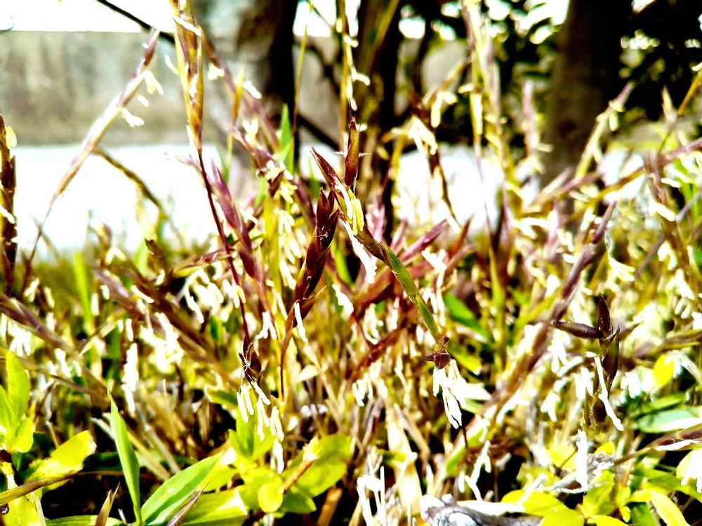 帰り道で、歩道側の花壇に、篠か❓笹の花❓が、咲いていました。