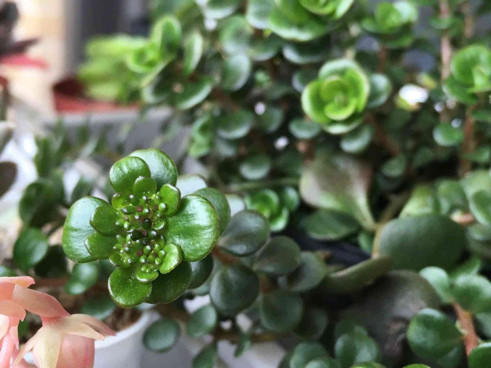これってステップストーンの花なのかしら🤔先っちょの3つにひとつはこんな感じです。とにかく増える、デカくなる。ベランダを埋め尽くす勢いで、先行き不安です😨