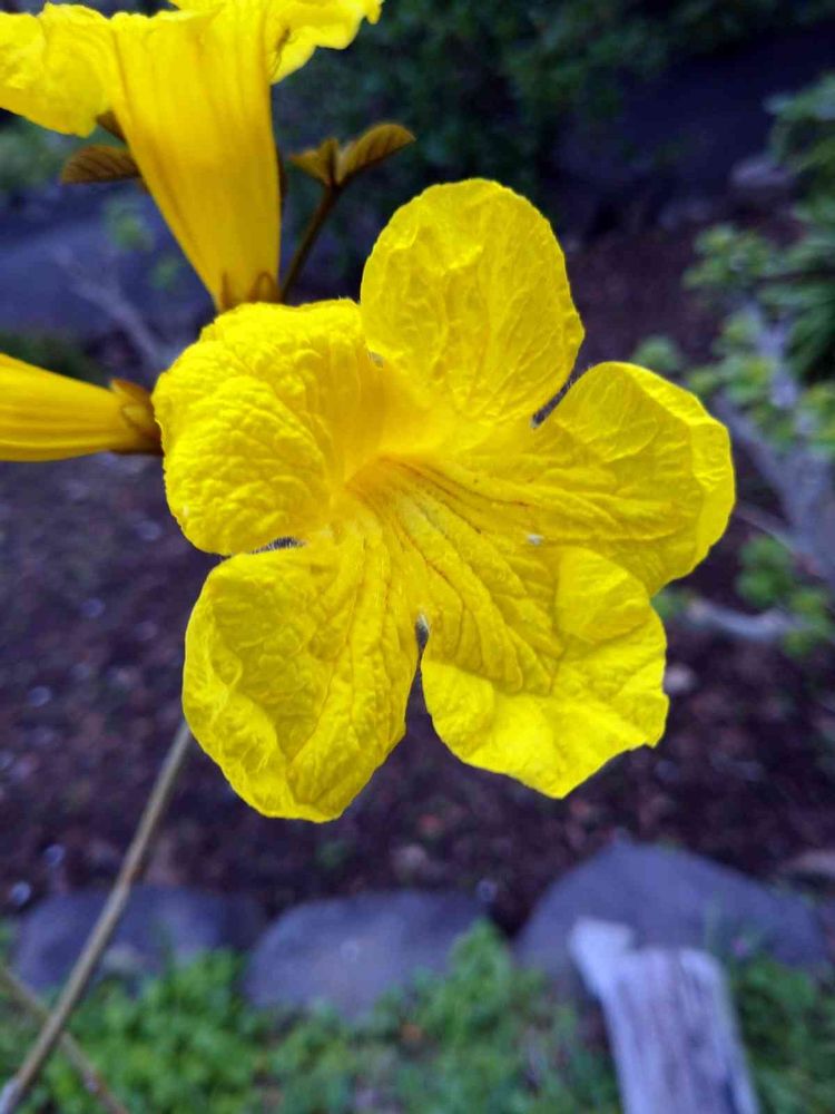 キバナイペーは高木で葉は掌状複葉です(写真に写っています)。花の時期には葉が開ききっていません。