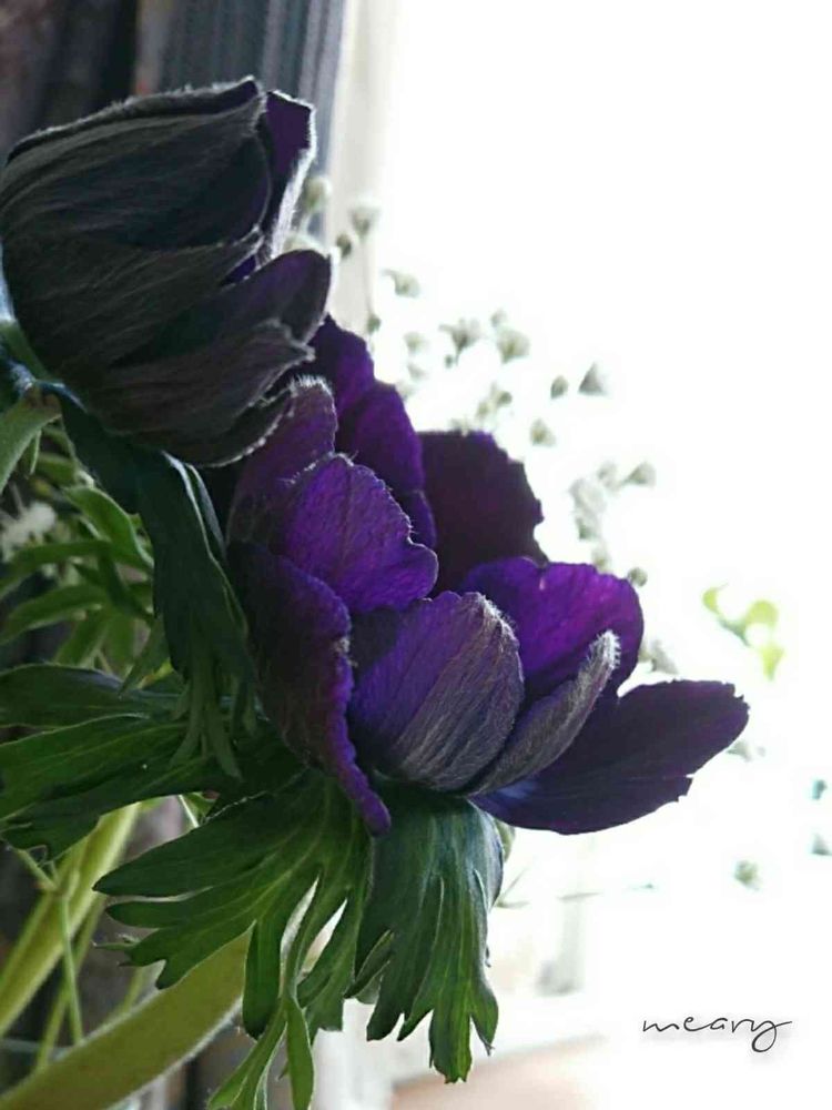 窓辺でアネモネ咲いた💜ちょっとアンニュイな横顔 👀📷✨🤗