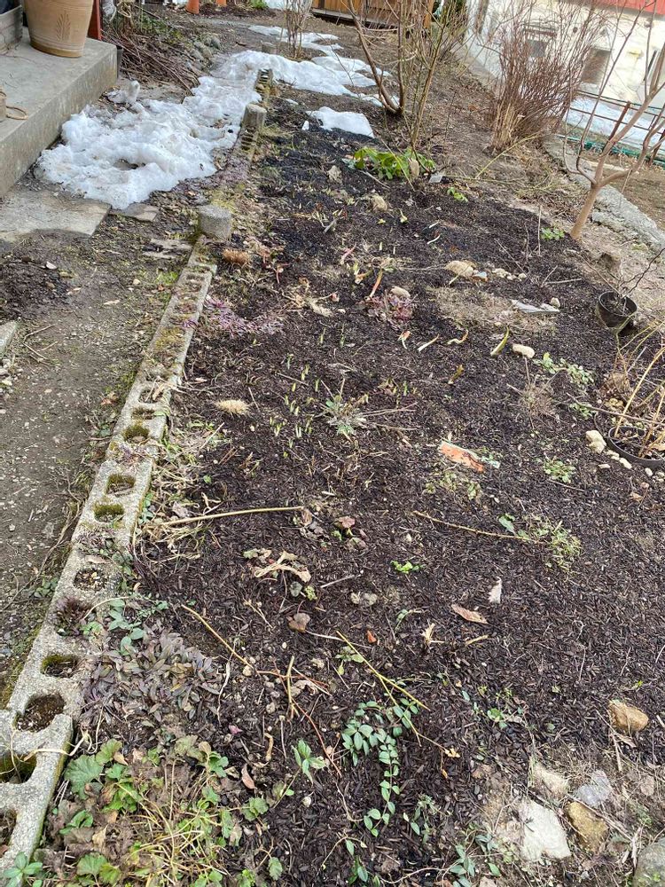 駐車場側の新設ガーデンにはまだ雪がありますが、そっちはゆっくりやっていこう。