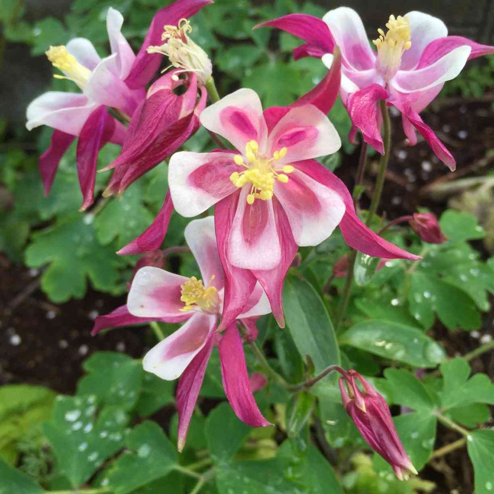 西洋オダマキで農家さんの直売所で格安で小苗をゲットしたものです。こぼれ種で増えるらしいです(^^)