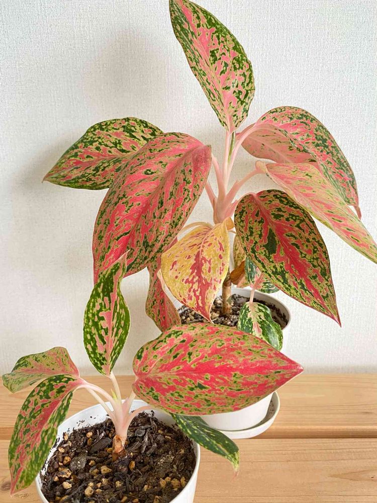 今年は暖かい部屋で冬を過ごしたピンクのアグラオネマ、