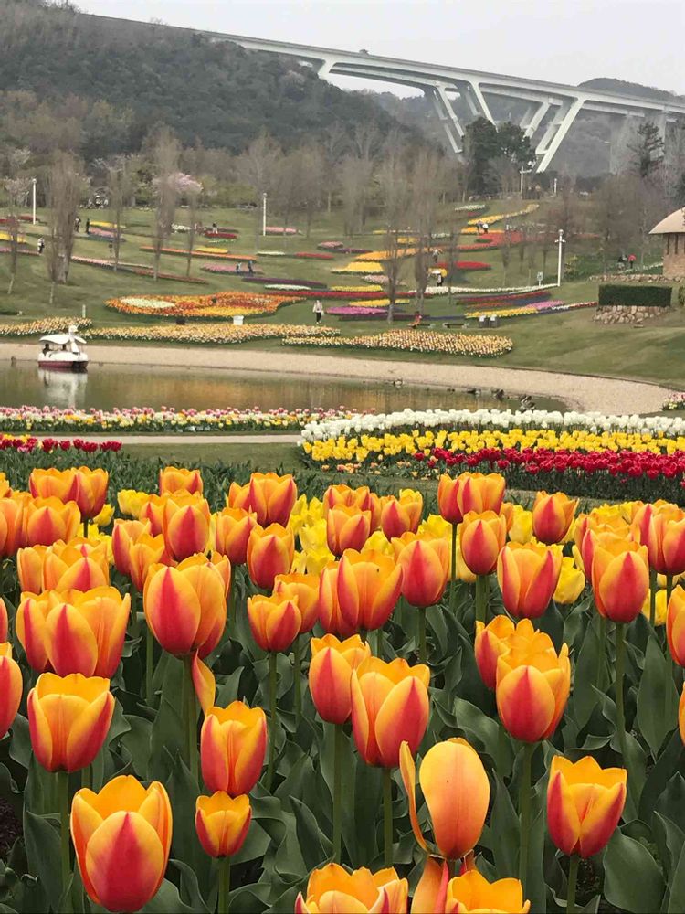 黄砂で景色は霞んで見えたけど、淡路島明石海峡公園のチューリップは、色鮮やかで、おとぎ話の主人公になったよう💕