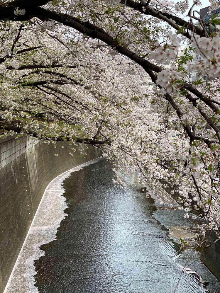 目黒川の桜も川の中に散ってピンクの花びらで埋め尽くし、目黒川じゃなくて🌸桜川🌸やなぁて言ってましたよ。