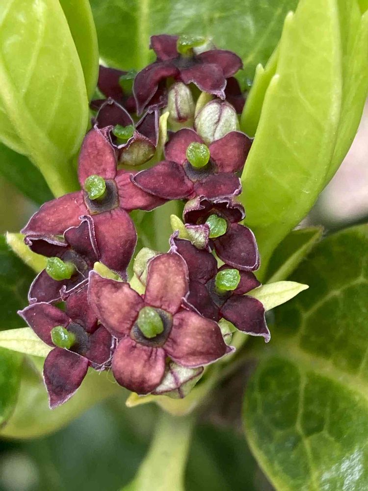 3日前の桜🌸の花見の時にアオキの雄花を見つけて、昨日、孫達の散歩でご近所散策で今度はアオキの雌花を発見👀