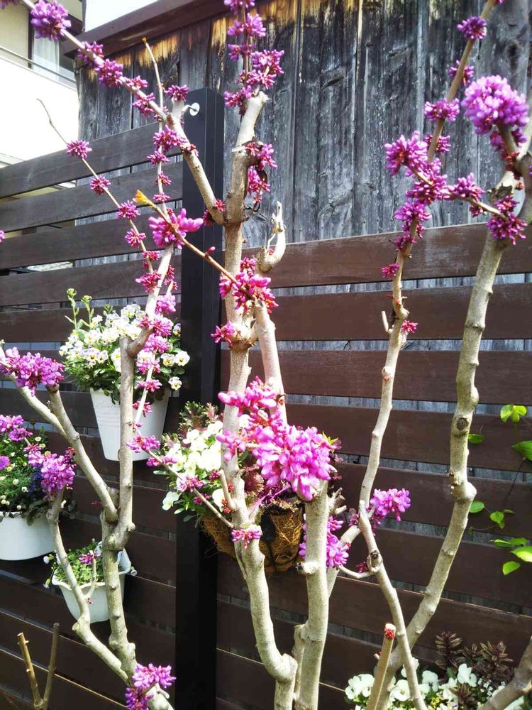 庭の 花蘇芳(ハナズオウ)の花が、咲いて来ました。