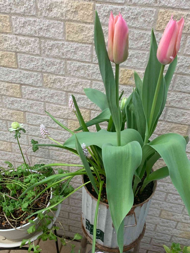 チューリップ咲きましたね〜💖💖 お色も姿も私の大好きなチューリップ🌷です✨✨かわいい〜😍ピンクのムスカリさんとのコラボも本当に素敵です✨✨✨