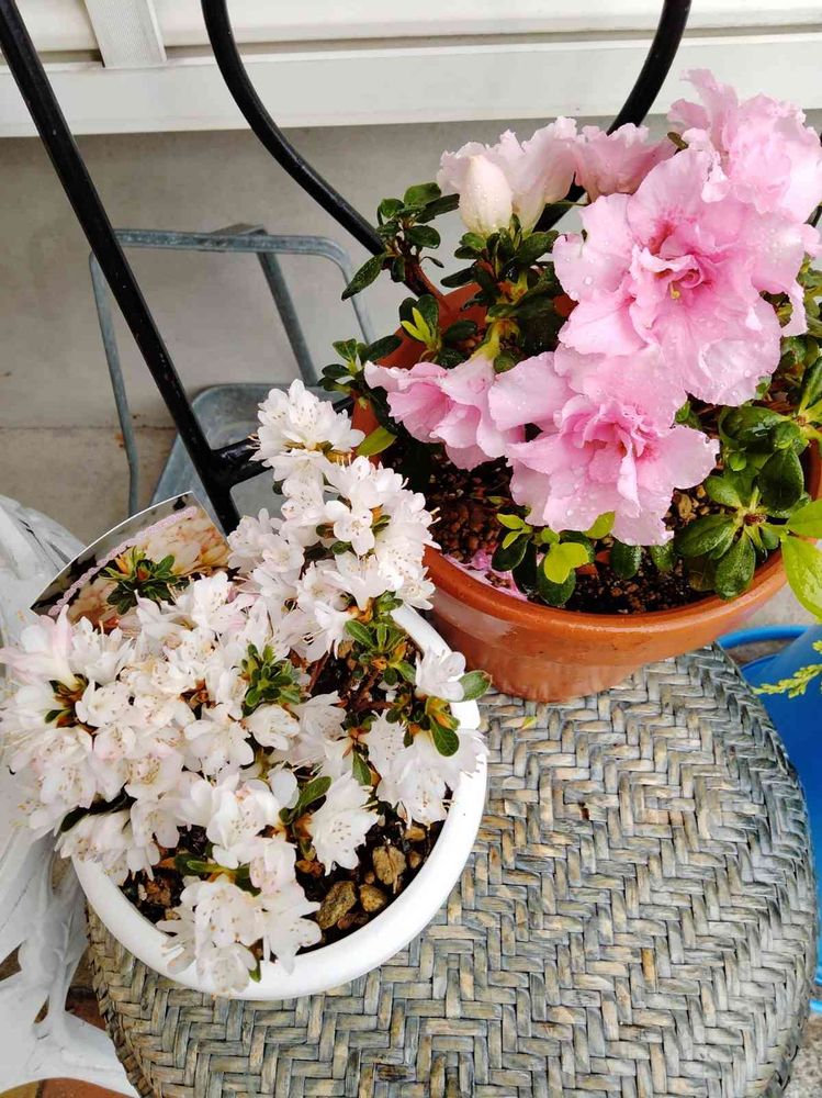 朝活。アザレアと久留米つつじレジナちゃんが花ざかりです。