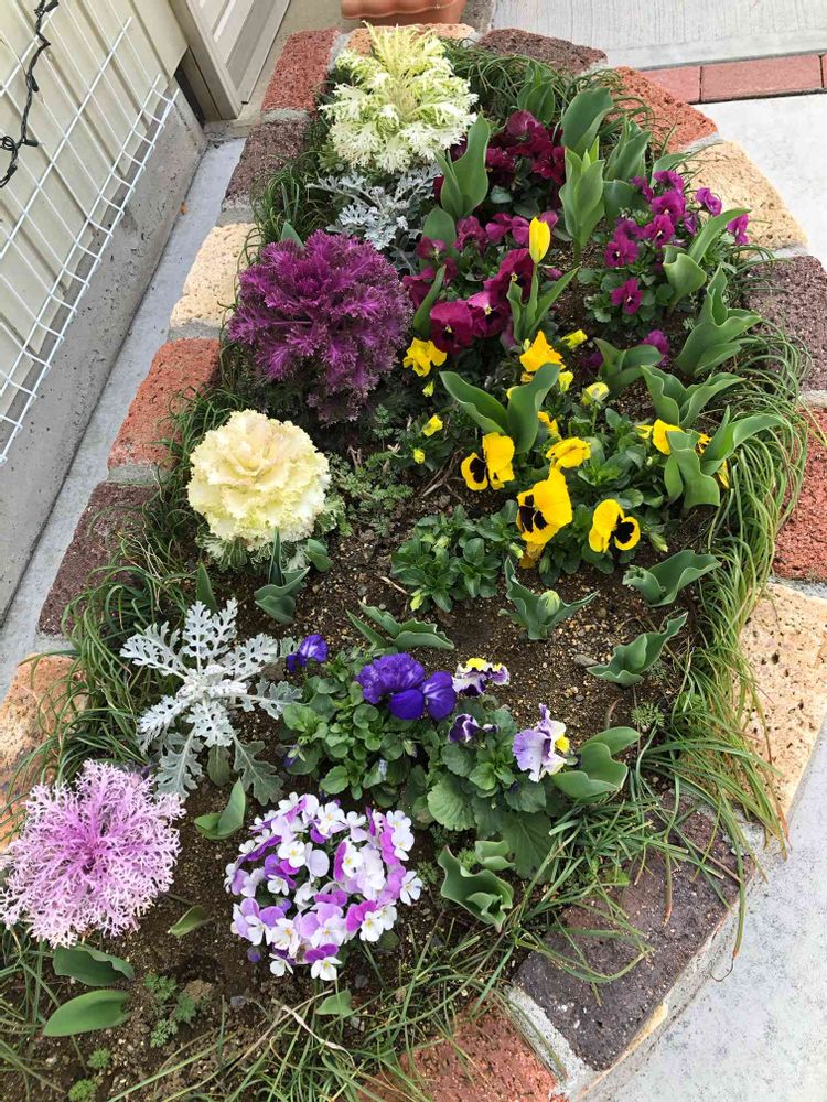 昨年11月に人生初めてのパンジービオラを植えまして、暖かくなり段々花壇らしくなってきました。咲き終わった花がら摘みも楽しいです