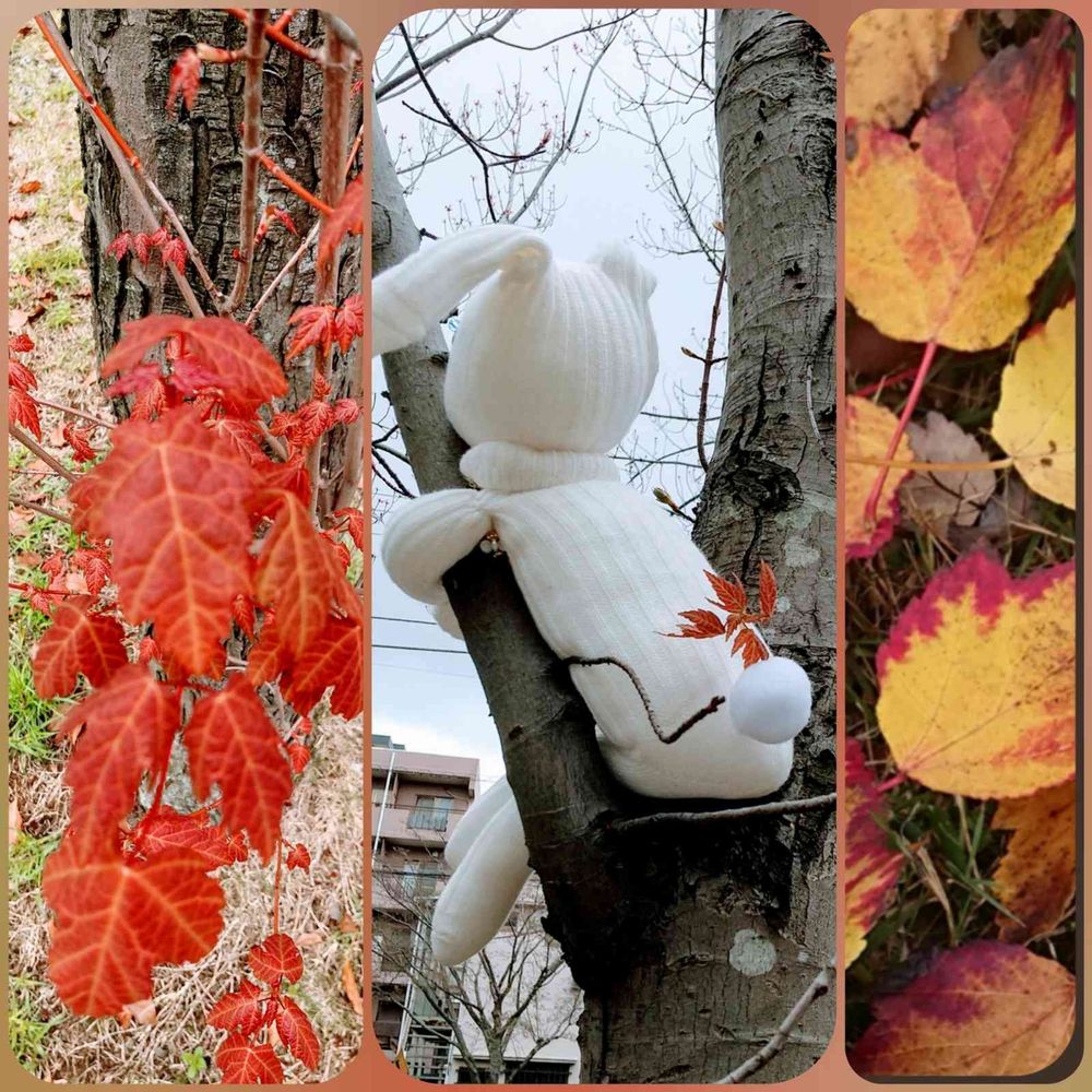 ソクラビちゃん 木登り上手ですね☺️赤い葉っぱがよく似合って可愛い~🎵💕