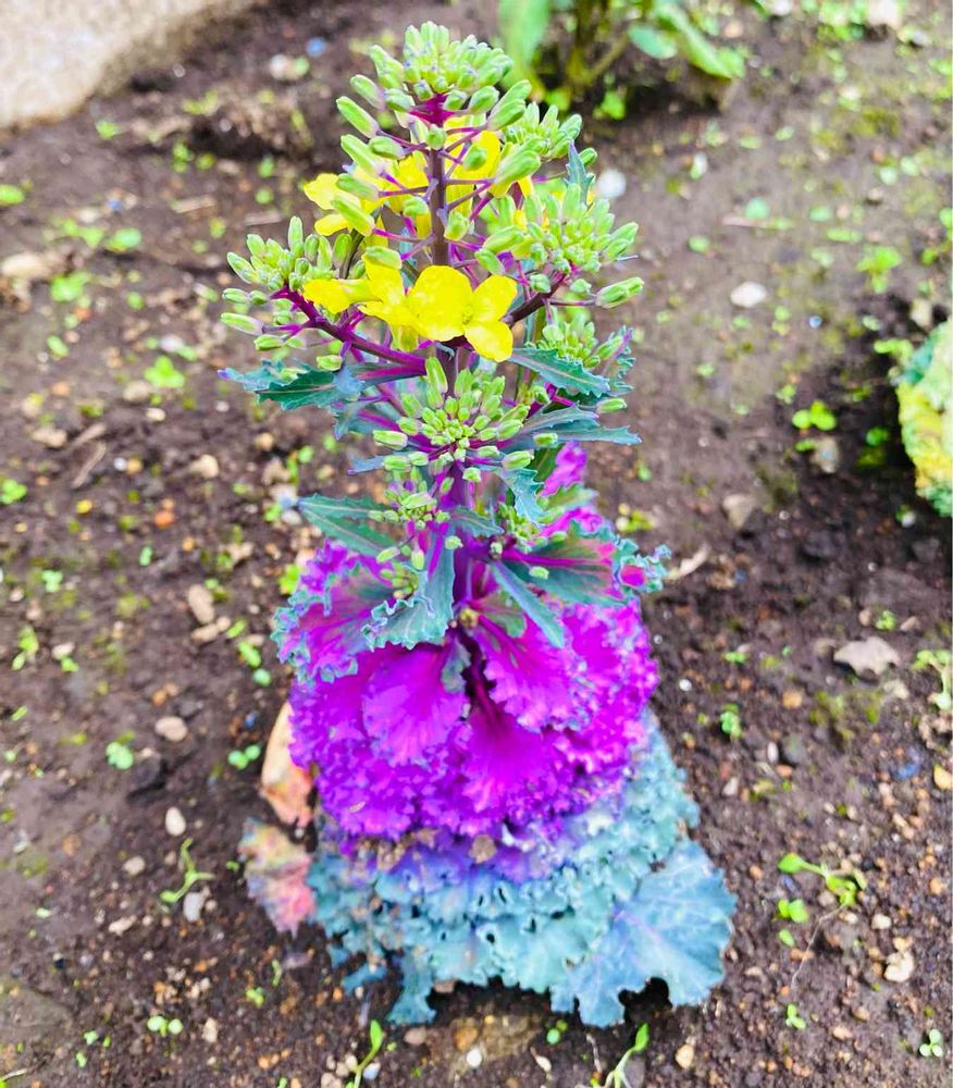 凄い!葉ボタンに花が咲くこと事態、始めて知りました。