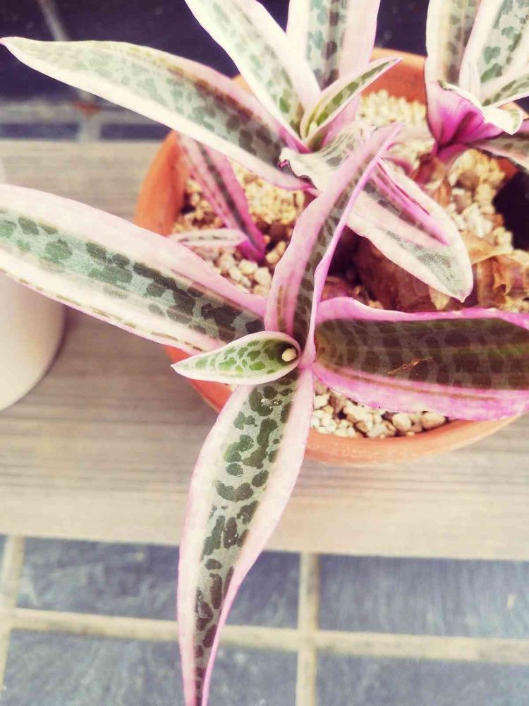 まだら模様の葉っぱにピンクの縁取りなんて、おしゃれすぎ😍