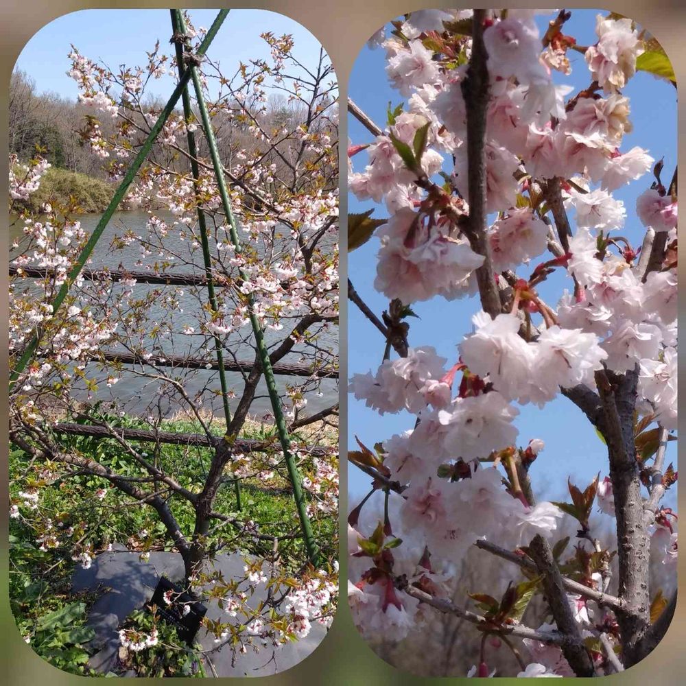 豆桜🌸が咲いていました😊右側のアップで見ると八重咲きで可愛いかったです(*´︶`*)