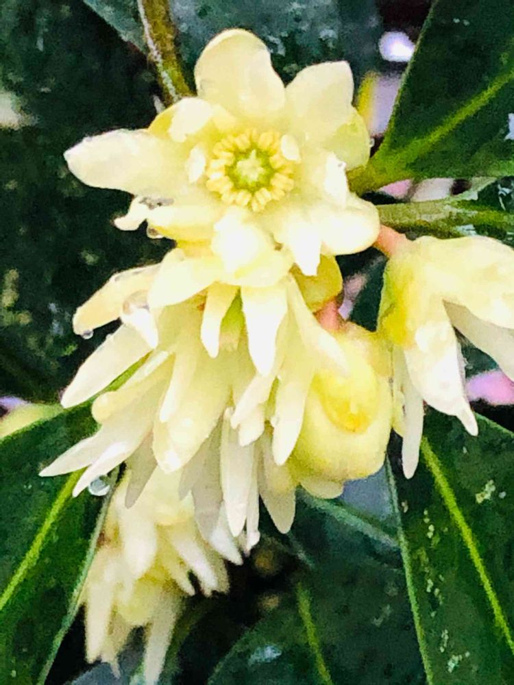 3月21日、お彼岸に、お墓の周りで見つけた、「おしきみ」の淡くやさしい色合いの花🌼🌼🌼