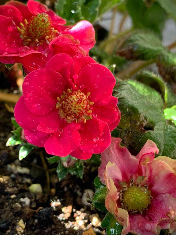 苺🍓の花 可愛らしいんですね〜 白い花ばかりかと思ってたんですよ💕❤️♥️💚