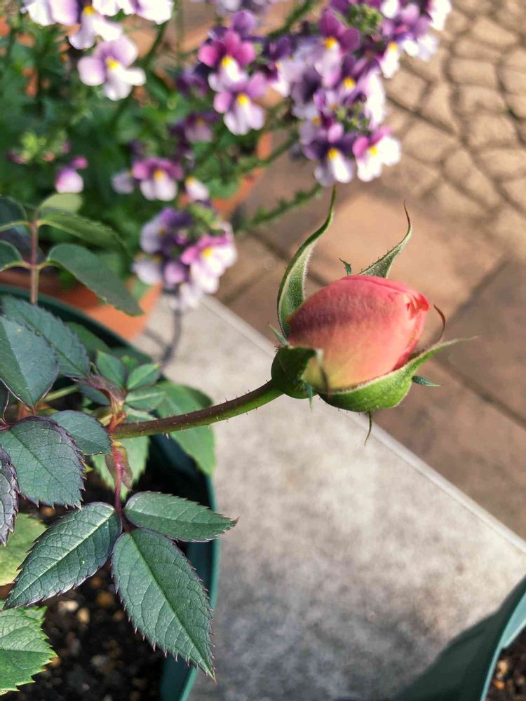 我が家のコレッタは、バラ好きの友人から成功した挿木苗をいただいたものでして🌱…あと数日で開花してくれそうです💕