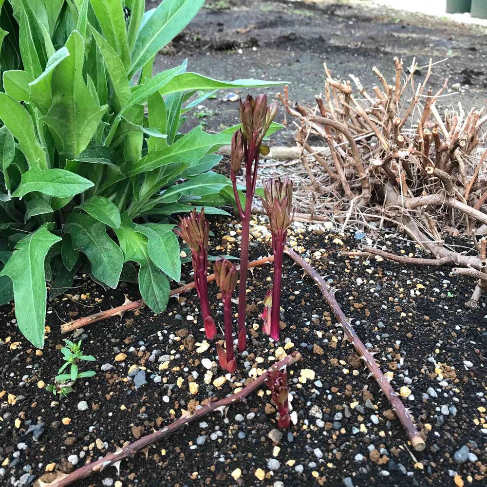 ちょっと謎の生物的見た目ですが、これがあの美しいシャクヤクの花を咲かせるかと思うと、生き物の不思議を感じます。