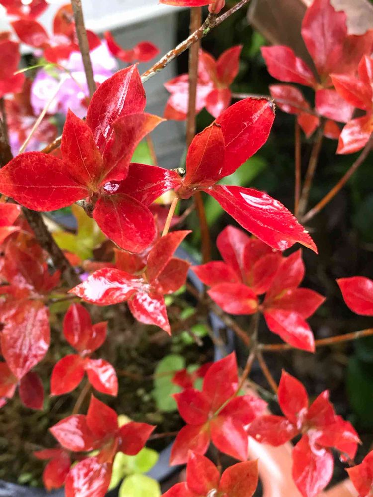 鉢植えのドウダンツツジが真っ赤に成りましたよ〜😊